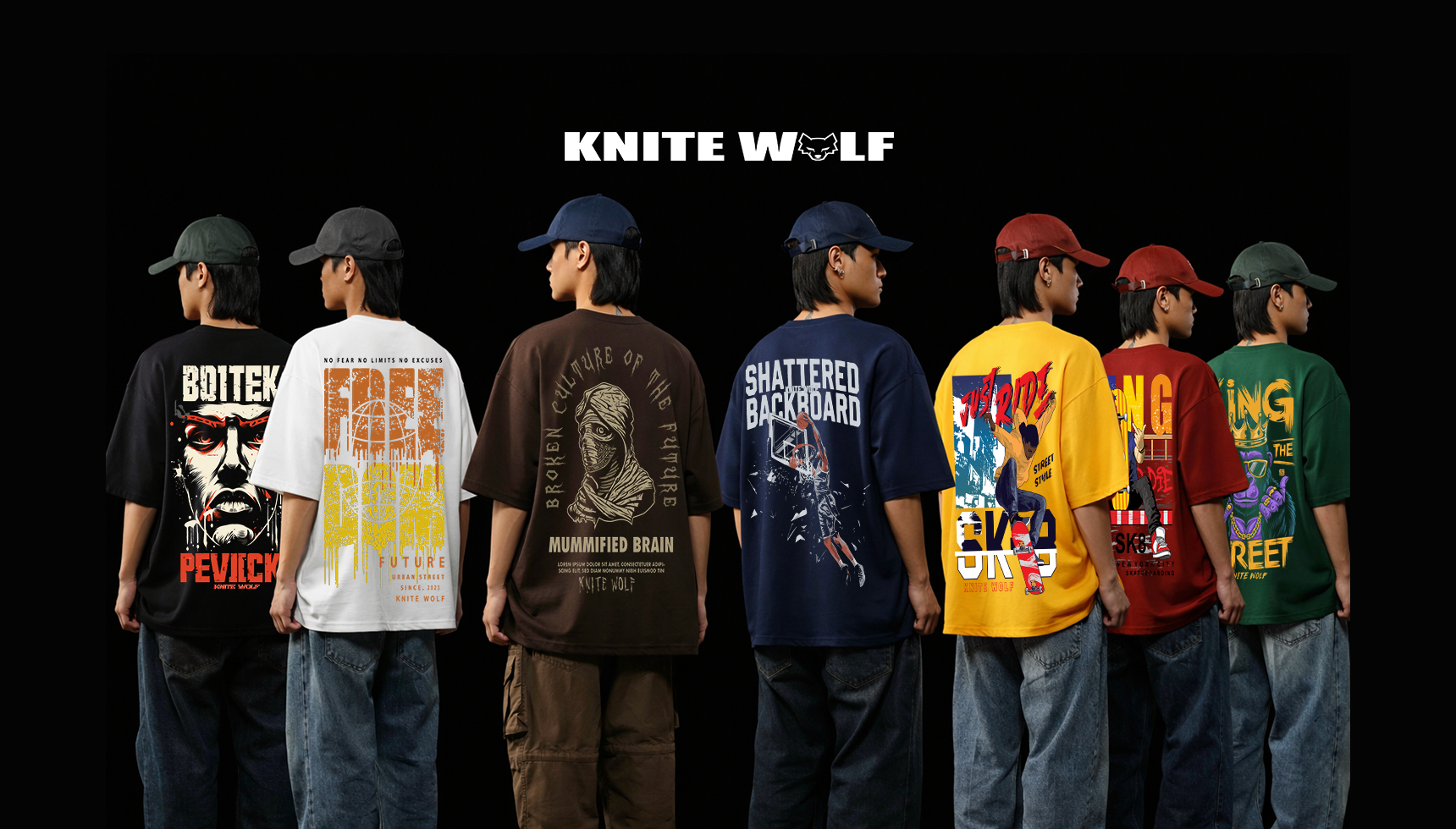 Knite Wolf Men’s Black Oversized Graphic Printed T-Shirt – Back Print Streetwear Tee